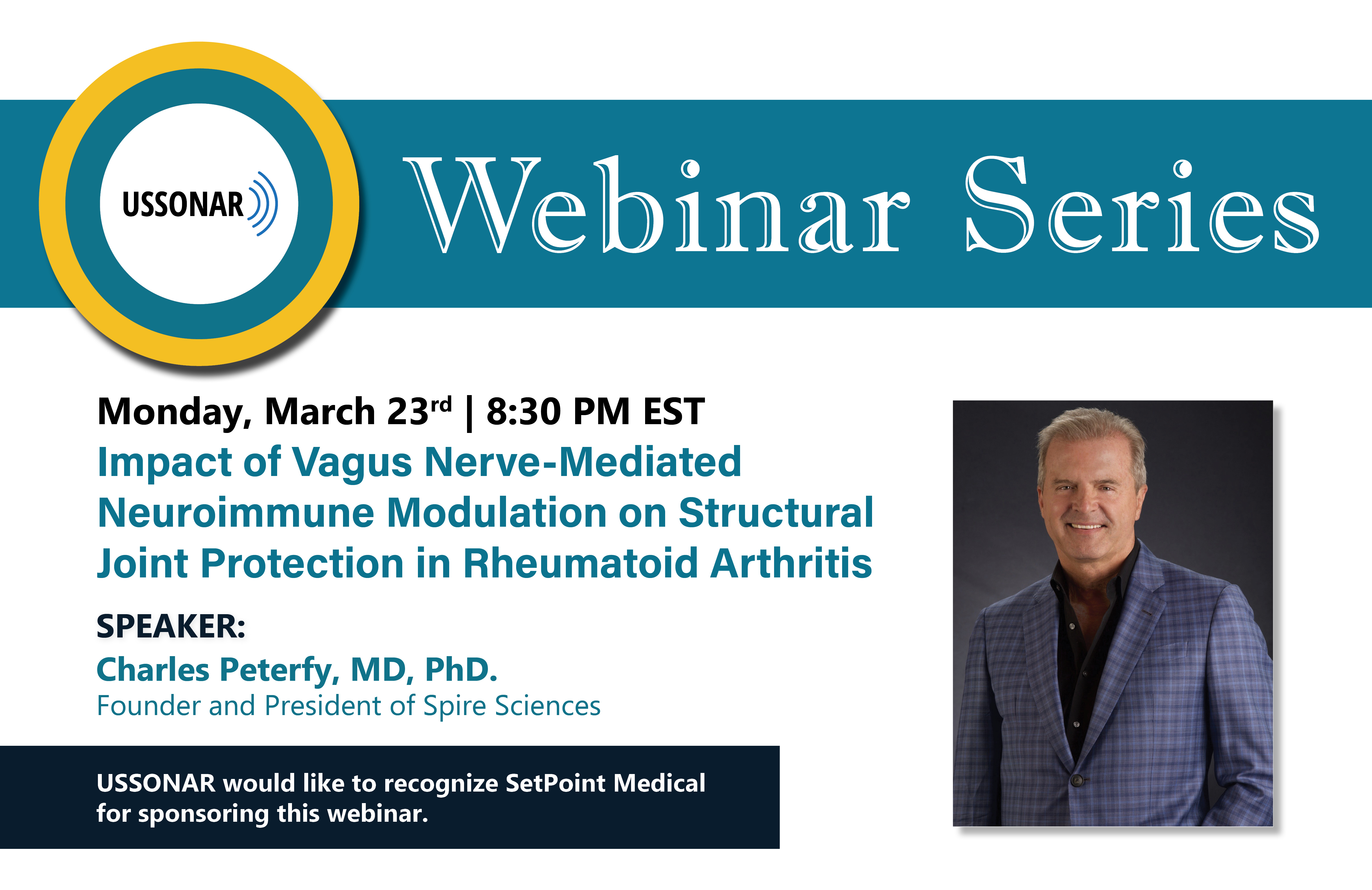 This session in the USSONAR Webinar Series is brought to you by SetPoint Medical. Already registered or attended previous sessions? No action needed, you're all set. You’ll receive a reminder email with the Zoom link, and an option to add each session to your calendar. We strongly recommend adding the calendar invite to keep the link handy and the dates saved. Not registered yet? You can still join us: Register Here |